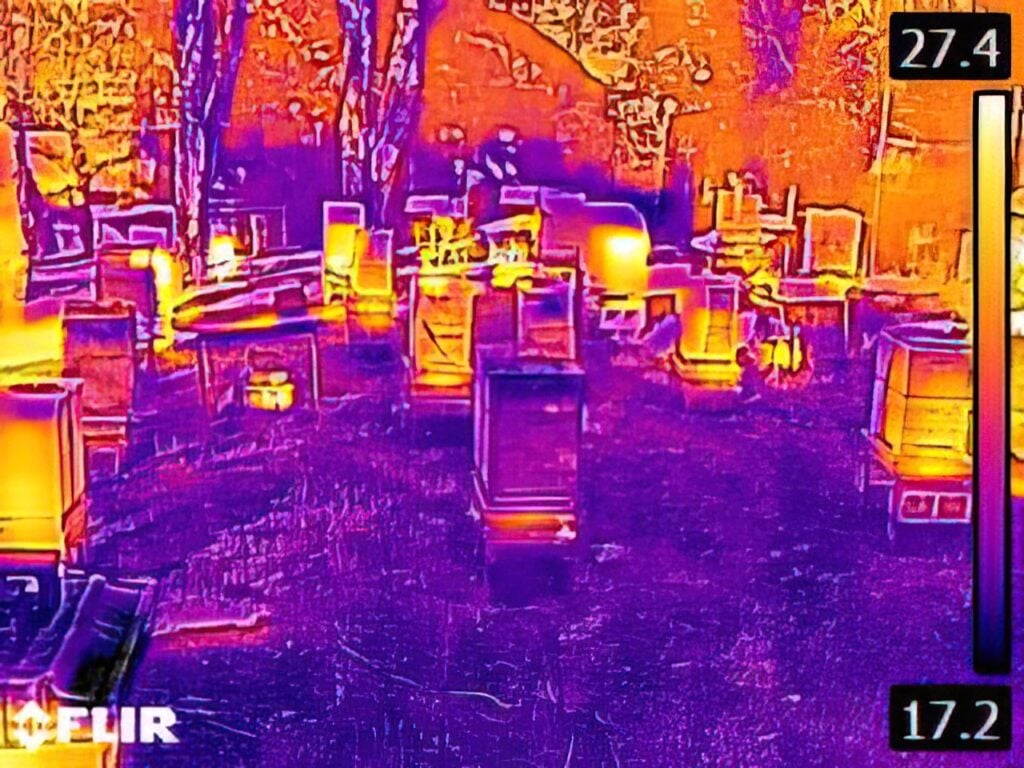 Healthy hives keep warm in winter, while dead or dying ones eventually cool down to the same temperature as the environment. Photo Theotime Colin